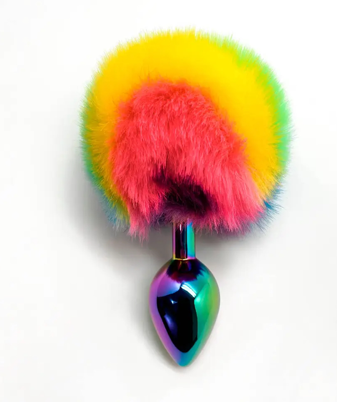 - · · Plug multicolor con cola de conejo arcoíris.