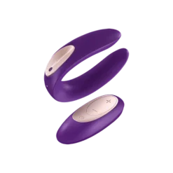 El Satisfyer Double Plus Remote es un vibrador para parejas, tanto para ella como para él. Su particular forma permite estimular a ambos miembros de la pareja con vibraciones espectaculares durante el sexo. La mujer lleva el vibrador durante el sexo, de modo que no solo estimula su punto G y el clítoris, sino también el pene de su pareja. El extremo más delgado de este juguete de bienestar sexual proveedor de placer se introduce primero en la vagina y el extremo más grande se coloca sobre el clítoris. Dos potentes motores excitan el clítoris, la vagina y el pene al mismo tiempo de una forma excitante y hacen que vuestro acto sexual sea impresionante. La ajustada forma en U ofrece una reconfortante y adicional firmeza y una maravillosa presión en tus partes más bellas de la lujuria. Evidentemente, las mujeres también pueden utilizar este dispositivo de bienestar sexual vibrante en solitario.